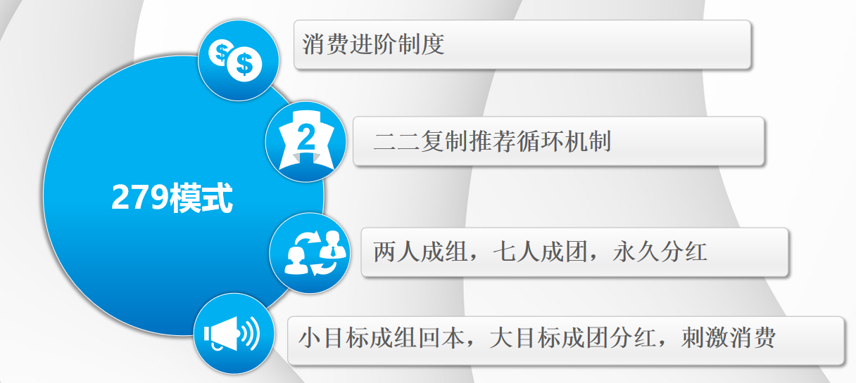 279 模式的精髓是二二复制推荐循环机制,把商业逻辑简化到极致!老板们只需聚焦 “分享”,推荐收益直接开挂: