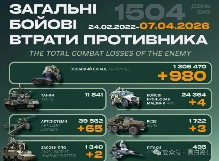 今天是俄乌战争第1504天(2026年4月7日),过去24小时大事件概述如下: