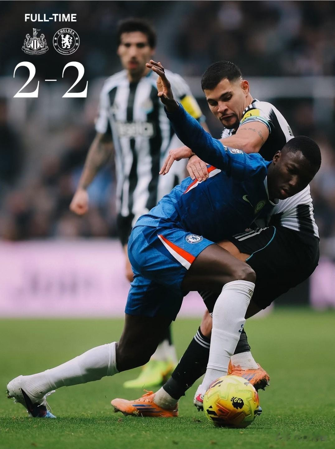 纽卡斯尔联2-2切尔西两支球队各踢了半场好球。