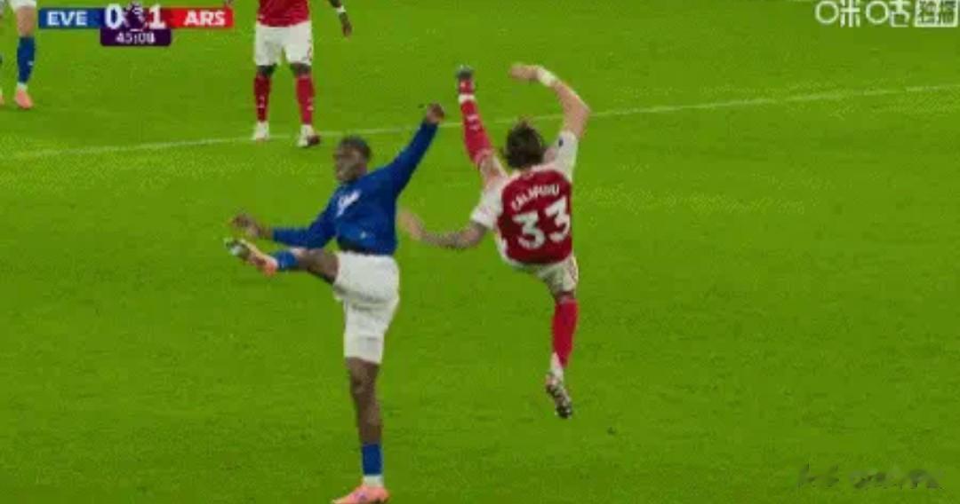 不过阿森纳还是顶住了压力,上半场几乎把埃弗顿压在防守半区,苏比门迪、哲凯赖什不断上演进攻尝试,只是准度欠缺。直到第27分钟,奥布赖恩在防守高空球时手球犯规,哲凯赖什点射破门,阿森纳1-0领先。
