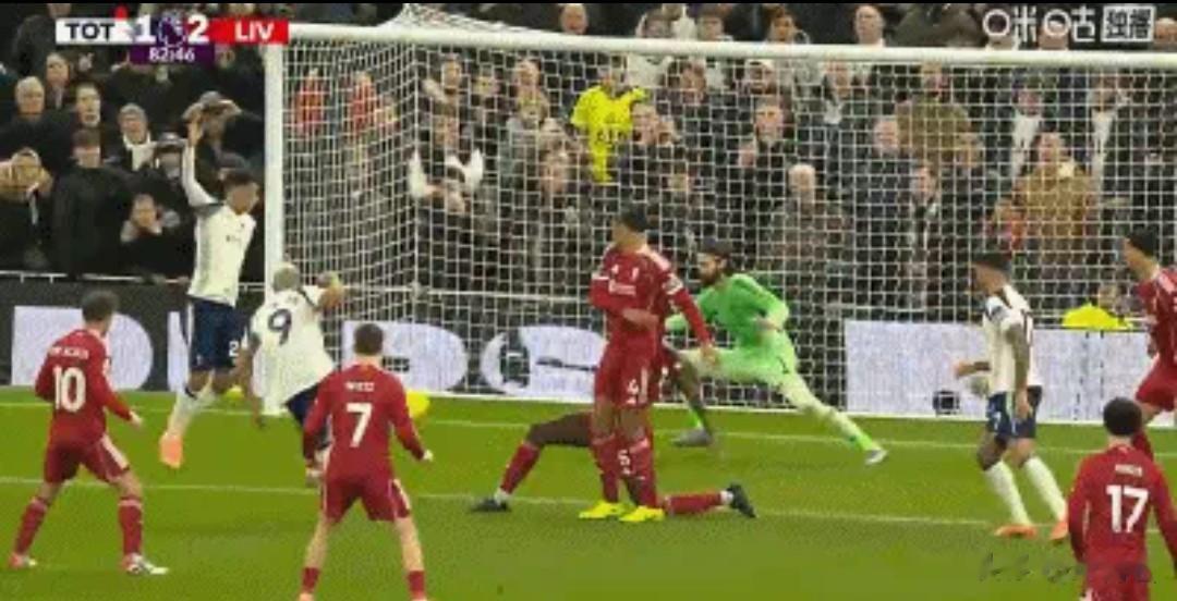 两球落后的热刺接连进行换人调整,并在第80分钟换上了里沙利松。这次换人效果立竿见影,仅3分钟后,热刺的角球机会,里沙利松在混战中扫射破门,热刺扳回一球。