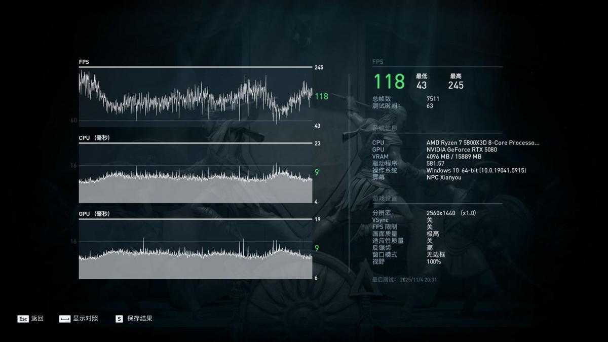 《忍者龙剑传4》,经典IP,FC游戏最喜欢的一款动作游戏,就是难度比较高。测试画质拉到最高,平均都在200+帧。