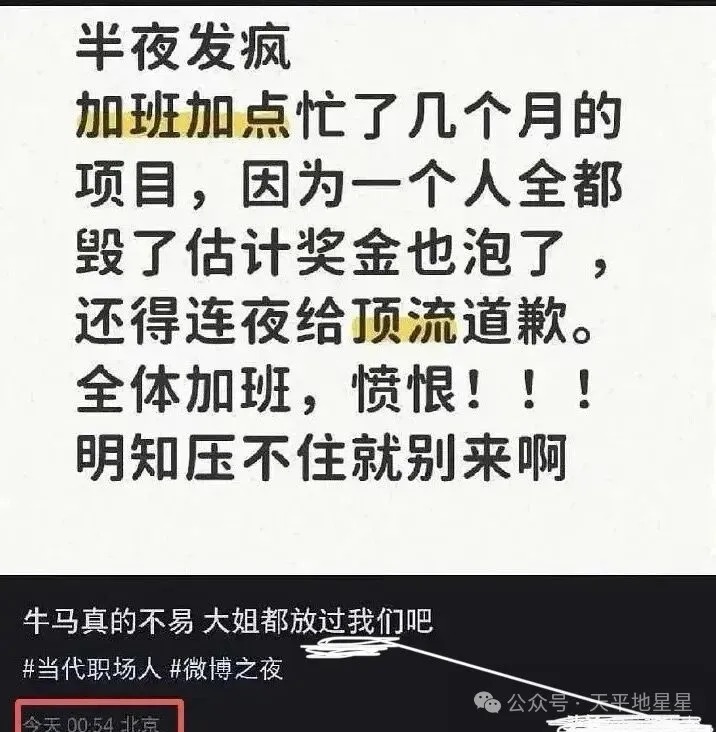 第二波:疑似导演组人员深夜发文内涵,吐槽 “牛马的命也是命”,暗指某团队擅自换座,导致他们忙活半天的心血白费,年终奖都泡汤了。