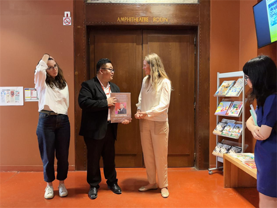 法国巴黎文理研究大学国际合作主管、教授:艾米丽·埃蒙德教授(Ms.Emilie.Emond)和罗大友院长教材合影留念