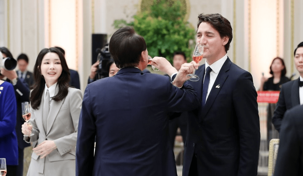 虽然不同国家有不同的风俗,但这一外交场面,还是很让世界震撼,两个国家的男性领导人,居然真喝上了交杯酒。谁啊?一个是加拿大总理特鲁多,一个是韩国总统尹锡悦。你勾着我的右手,我绕过你的右臂,亲昵地把小酒送进自己的口。近日晚上的这一幕,真是满堂春色惹人醉。国际政治有意思吧。怎么看这戏剧性的一幕?简单三点吧。1,显示关系很特殊。今年是加拿大和韩国建交60周年。按照尹锡悦的说法,今后60年,韩国要与加拿大携手构建更强有力的合作伙伴关系。来访的特鲁多则回应,和韩国的关系是特殊的关系,同过去60年一样,今后数十年也将一如既往地保持这种关系。别忘了,当年到半岛打仗的所谓“联合国军”,其中就有加拿大部队。现在百年大变局,韩国和加拿大也越走越近。这次出访韩国期间,加拿大和韩国还举行了第一次外交、经济“2+2”高级别对话。两国关系很特殊,为了显现这种特殊,那就入乡随俗,交杯酒上吧。