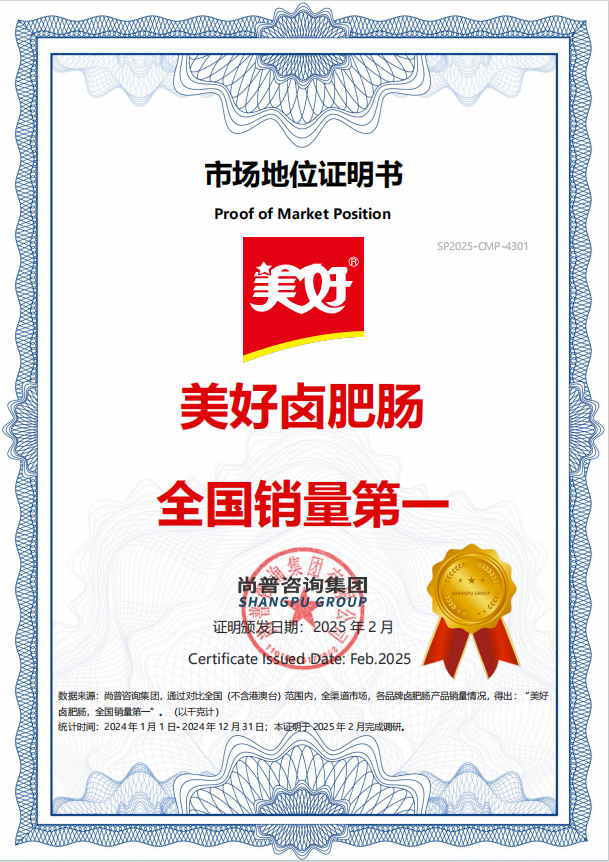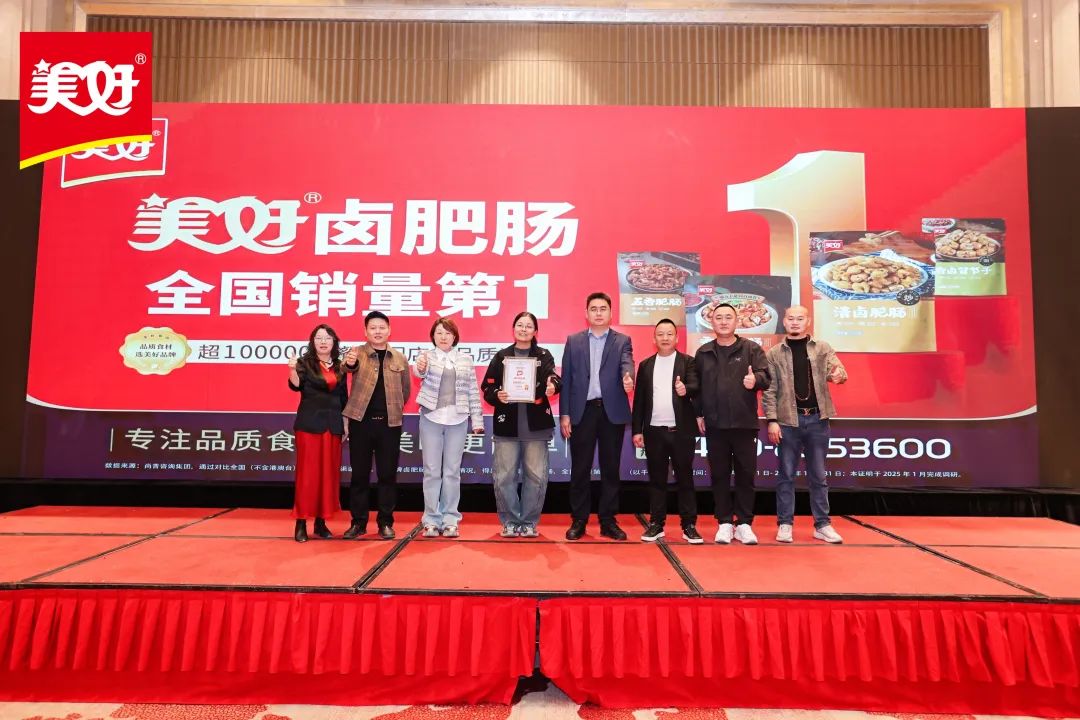 3月29日晚,美好食品在武汉举行“创新破卷 美好领航——2025年美好食品全国核心经销商交流会”。在全国核心经销商的共同见证下,美好食品正式发布了由尚普咨询颁发的“美好卤肥肠,全国销量第一”证书。