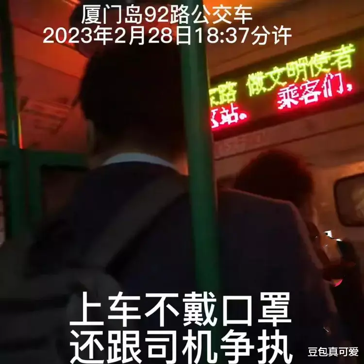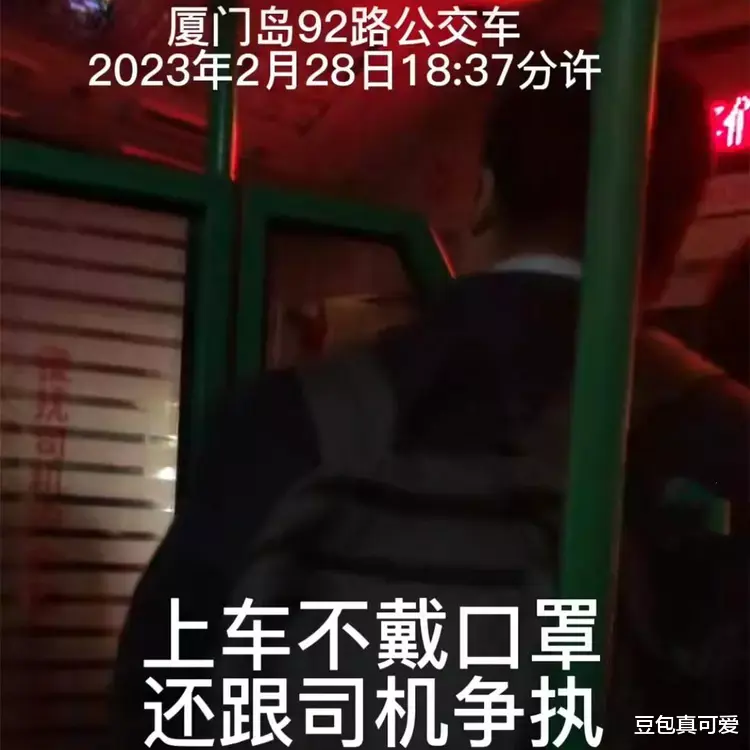 近日,福建厦门,一位男子乘坐公交车时就没戴口罩,司机提醒后还是不想戴,一位同车乘客看不下去。