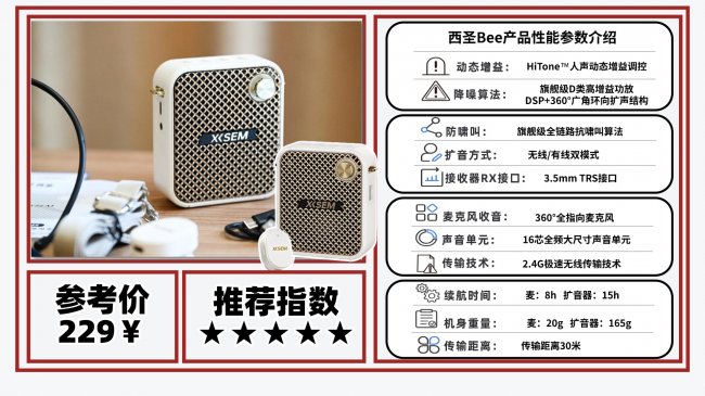 不过它的音质和降噪肯定不如专业音响,也没法做到完全无声,这点要提前有心理预期。下面我结合实际体验,把市面上比较热门的几款小蜜蜂扩音器重新梳理了一下,每一款都聊聊它适合什么人。一、值得入手的扩音器推荐安利品牌1:西圣bee领夹扩音器推荐指数:★★★★★推荐语:扩音器里的硬核王者,性能天花板级存在!
