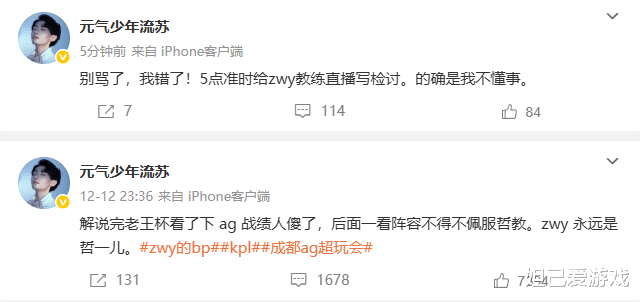 流苏:“解说完老王杯后看了下AG战绩人傻了,后面一看阵容不得不佩服哲教,zwy永远是哲一儿。”