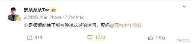 很多观众不认可流苏的发言,而AG前教练奶茶也是在今天下午发博质问:“你是哪根筋搭抽了,有脸说这句话的请问,配吗?”