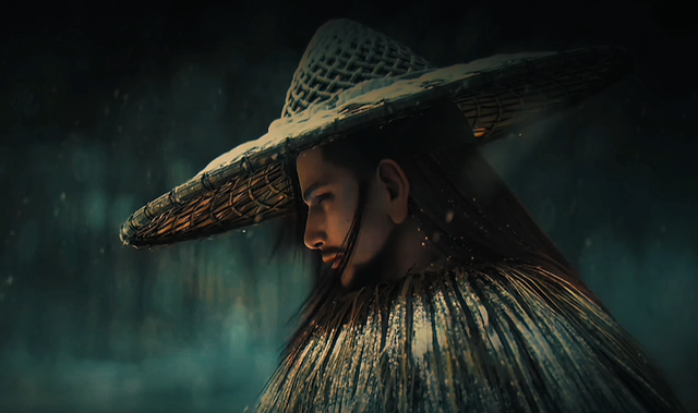 而此时的他则化身成了一位渔夫,身披斗笠,手持钓竿,安然静坐在伊水之畔,等待着有缘人的出现。