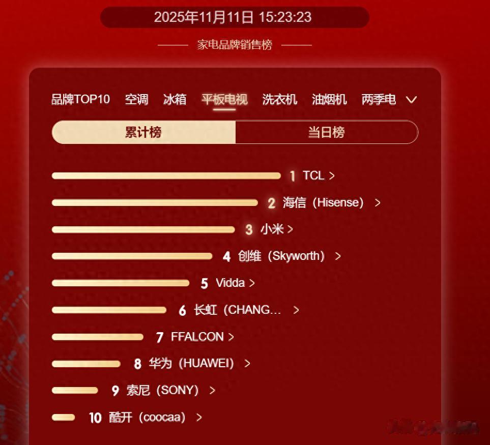 一、TCL:技术标杆,覆盖全场景需求作为国产电视 “技术标杆”,TCL是 Mini LED技术的开创者。其产品以 “画质极致 + 配置均衡” 著称,从旗舰级到质价比款均有爆款出圈,连续多年稳居全球电视销量前列,尤其在高端市场的表现备受认可。