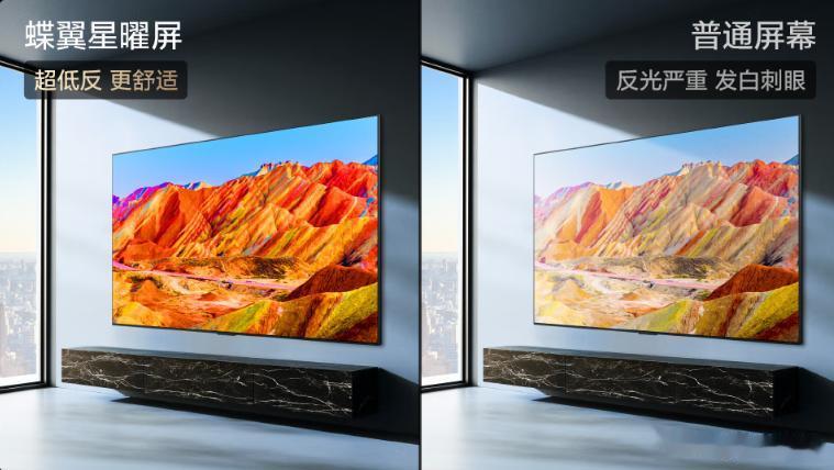 它同样搭载蝶翼星曜屏,配合绚彩 XDR 3000nits 峰值亮度与量子点 Pro 2025 技术,98% DCI-P3 广色域覆盖,色彩层次丰富且寿命长久;TSR AI 画质芯片通过 “云端 + 终端” 双重增强,在线片源越看越清晰。机身极致薄可真贴墙,灵控系统 3.0 支持 288Hz 高刷与 4 路满血 HDMI 2.1,安桥 2.1.2 Hi-Fi 音响强化体验,同价位质价比突出。