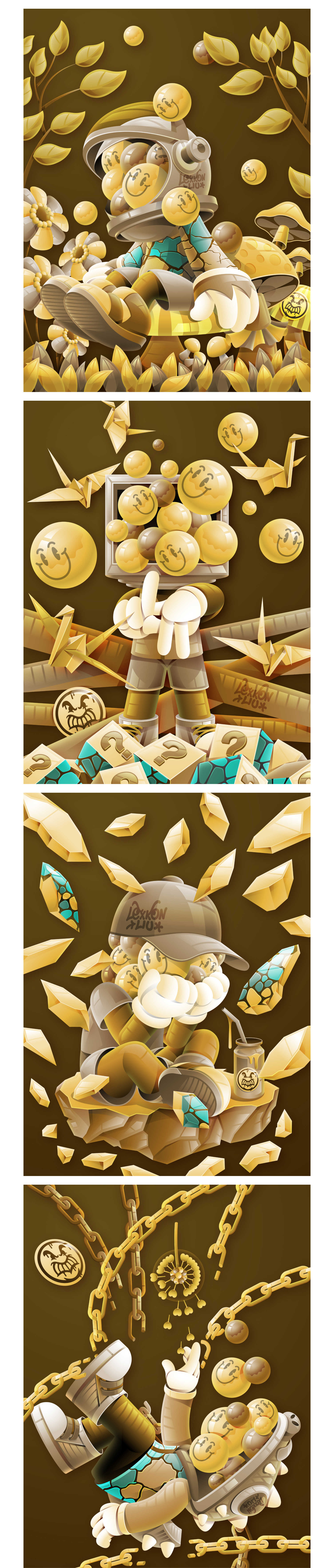 潮流艺术家Lexkon Liu发布全新系列作品《金色裂隙》(Golden Rift),作品以古典诗意与现代艺术形式的融合,探索人类脆弱性与心灵重生的深刻主题。灵感源于中国古代诗歌《不第后赋菊》的意象,结合艺术家Lexkon Liu本命石(绿松石)作为主色调,象征着智慧、希望与生命的力量。