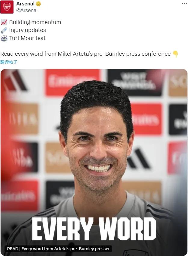 阿尔特塔在赛前新闻发布会上谈到了球队的伤病问题,咱们简单看看阿森纳主帅的发言。