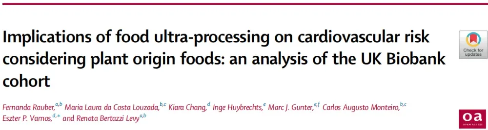 [3] RAUBER F, LAURA DA COSTA LOUZADA M, CHANG K, et al. Implications of food ultra-processing on cardiovascular risk considering plant origin foods: an analysis of the UK Biobank cohort [J]. Lancet Reg Health Eur, 2024, 43: 100948. DOI: 10.1016/j.lanepe.2024.100948.