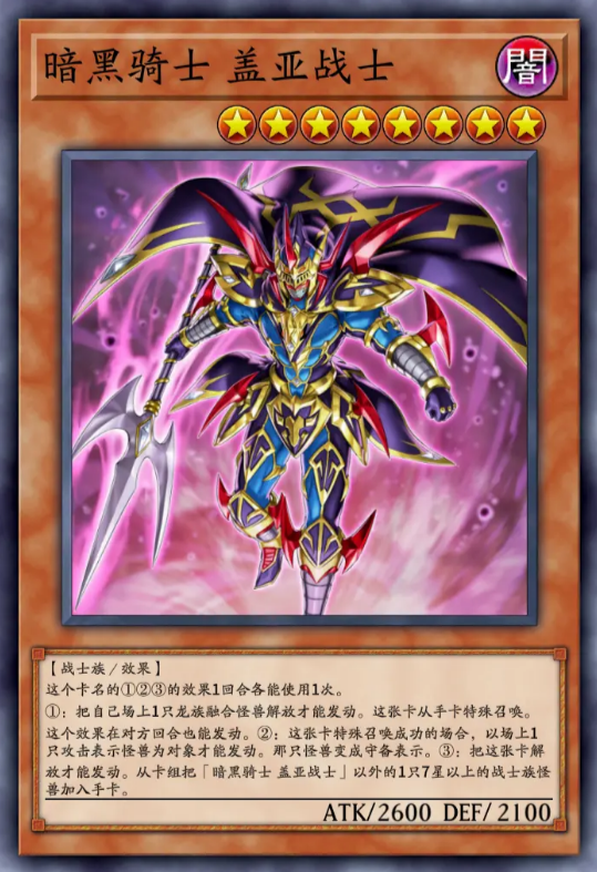 大家好,我是爱玩游戏王的卡尔,今天继续为大家带来经典游戏王卡牌,今天要跟小伙伴分享的是「暗黑骑士 盖亚」衍生卡牌