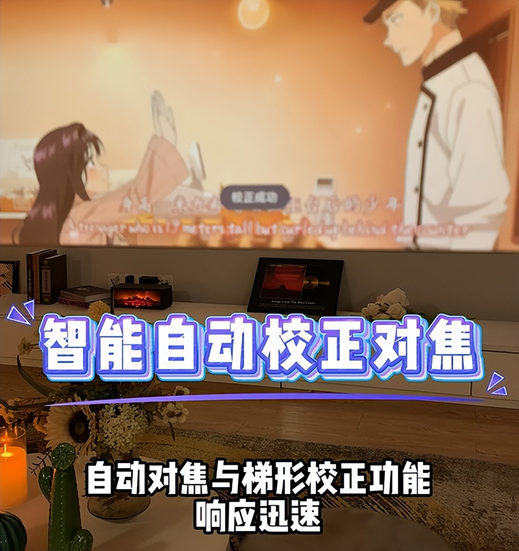 哪怕不小心碰到机器、挪动位置,它也能实时调整,全程无需手动干预。不管是放在床头斜投、客厅角落侧投,还是随手放在地上,都能秒出完美画面,小白用户也能 “开机即观影”,彻底告别 “调试半小时,观影十分钟” 的麻烦。