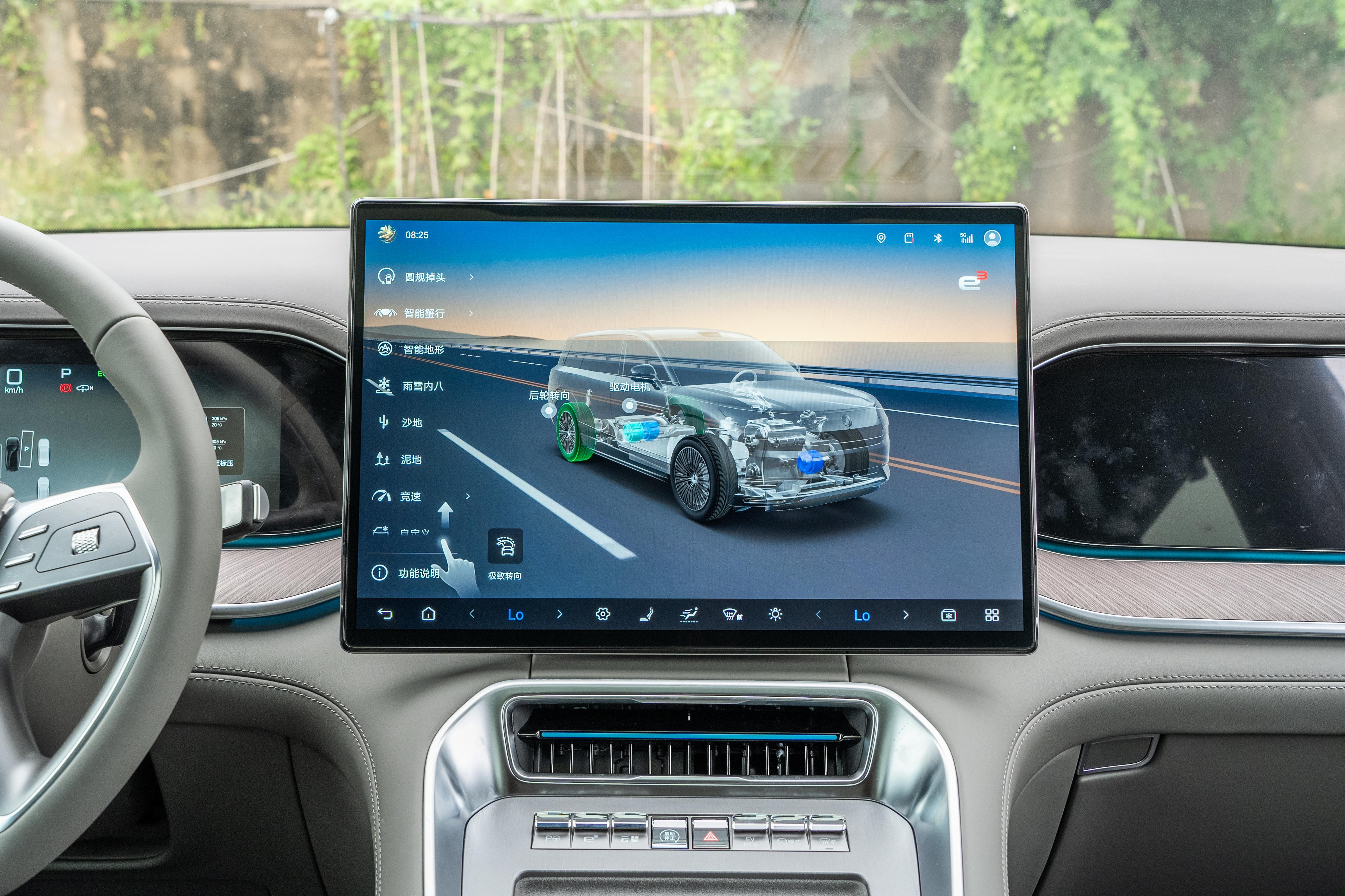 2.0T 插混专用发动机 + 三电机的组合,最大功率 680kW,却没有性能车的 “暴躁感”。日常市区行驶时,发动机介入几乎无感,电驱与发动机切换的平顺性堪比纯电车。亏电状态下油耗也让人惊喜,实测百公里 6.5L 左右,对于 3 吨多重的车身来说实属难得。