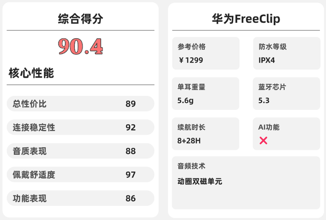 整体来看,华为FreeClip是一款设计极具巧思的耳夹式耳机,其佩戴舒适度和生态联动体验是其核心优势,非常适合华为手机用户作为日常辅助耳机,用于通话和资讯收听。但其在音质表现上的局限性也显而易见。