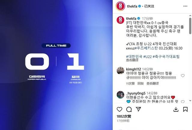 比赛结束后,韩国足协的评论区被愤怒和失望的球迷们“攻陷”。他们难以接受韩国U22输给中国队这一事实,纷纷表达自己的不满和担忧。有球迷直言:“韩国足球未来一片黑暗”,他们认为这场失利是韩国足球水平下滑的明显信号,甚至开始对韩国足球的未来产生了悲观的情绪。还有球迷对韩国足协的决策表示质疑,认为韩国足协在没有做好准备的情况下接受中国足协的邀请,是一种不负责任的行为。他们质疑球队的组织和管理,认为这是导致比赛失利的重要原因之一。