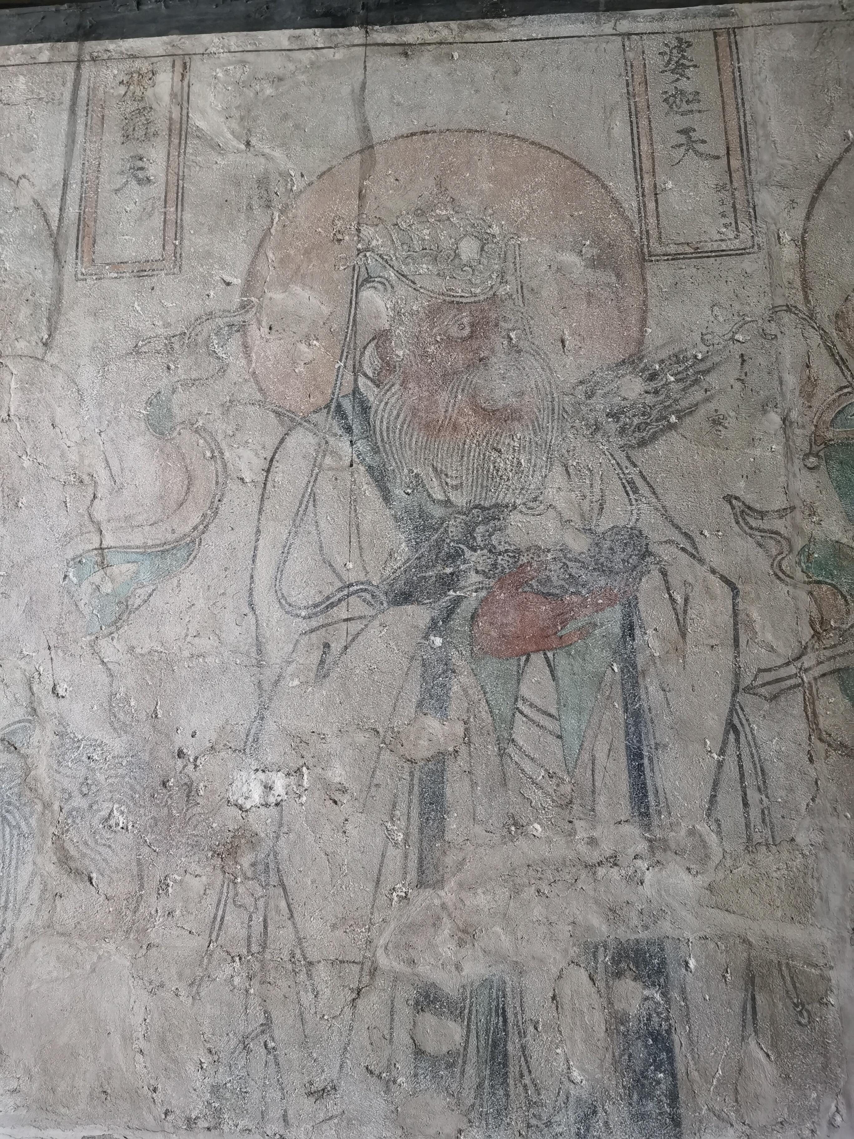 推开虚掩的木门,一股混合着尘土与木质腐朽气息的味道扑面而来。殿内光线昏暗,待眼睛适应后,猛然发现东、西及后檐墙上竟藏着惊人的秘密——36.6平方米的元代壁画在斑驳墙面上若隐若现。这些2010年修缮时才被发现的壁画,描绘的是佛教护法神"二十四诸天",从手持宝剑的增长天,到怒目圆睁的广目天,再到身披铠甲的韦驮天,每位天神都被刻画得栩栩如生。