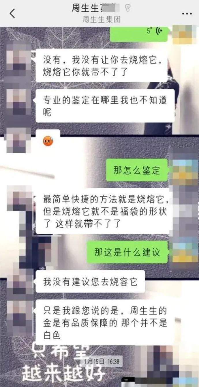 这种回应方式不仅未能解决问题,反而进一步激化了矛盾。在消费者已经提供初步检测数据的情况下,周生生工作人员仍表示:“周生生这么大的一个品牌,全国直营店,如果是金包银,那还得了”。