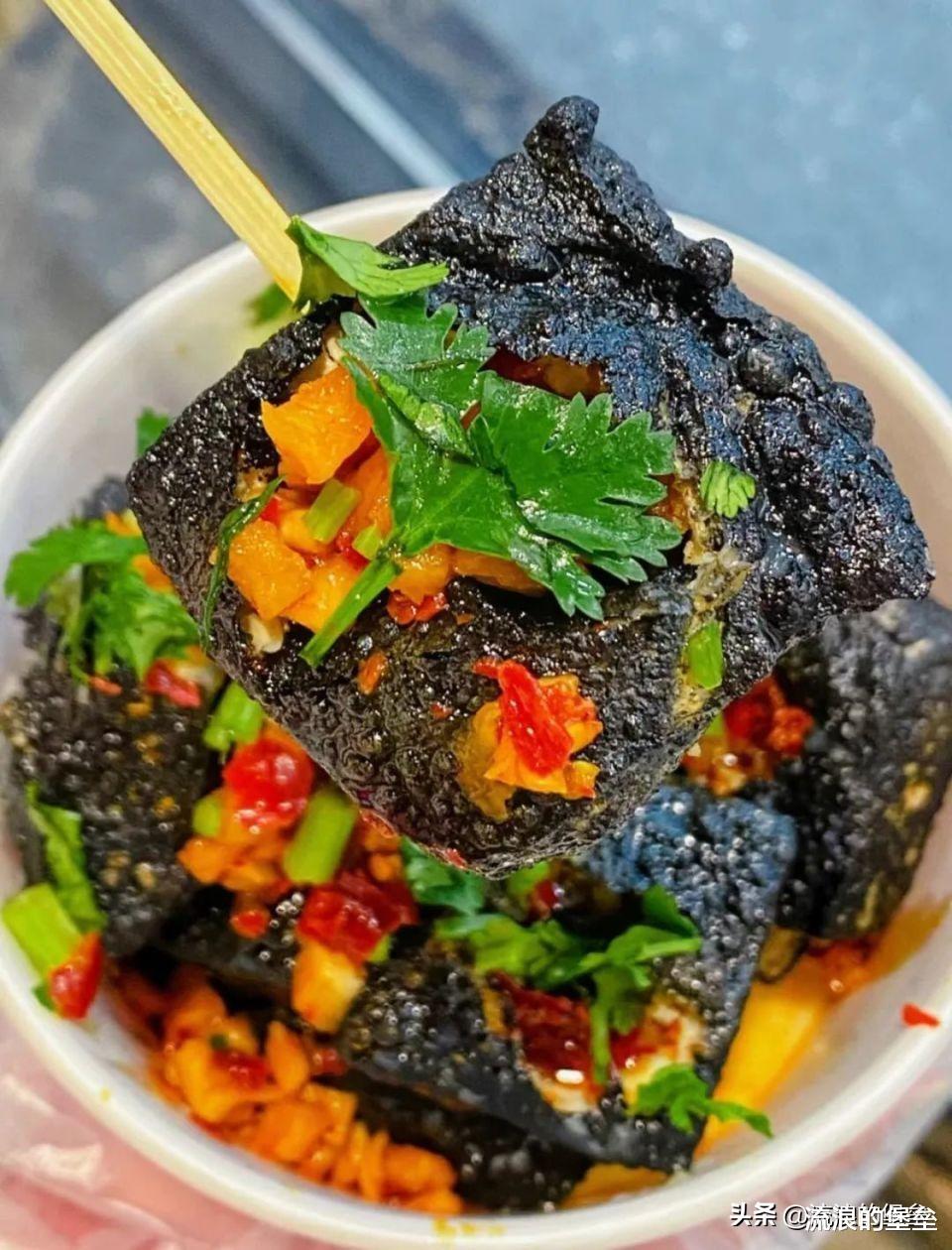 第十个臭豆腐,我觉得没有太多人可以拒绝臭豆腐,酥酥脆脆的外皮,包裹着嫩嫩的内里,灌一口汤汁, 加点配菜,真的一绝!