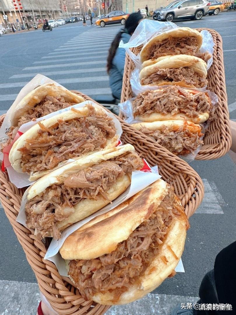 第三个肉夹馍,全国各地都有卖的,中国吃货非常会创新,肉夹馍现在可以夹万物,烤肉夹馍,还有里脊肉夹馍,各种配菜放在一起,真的很好吃!