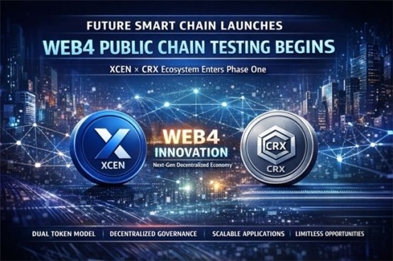 未来智链宣布启动第一阶段的公开测试,X-CEN × CRX 双核心、 Web4 生态体系进入实测阶段,探索新一代数字经济基础设施路径。