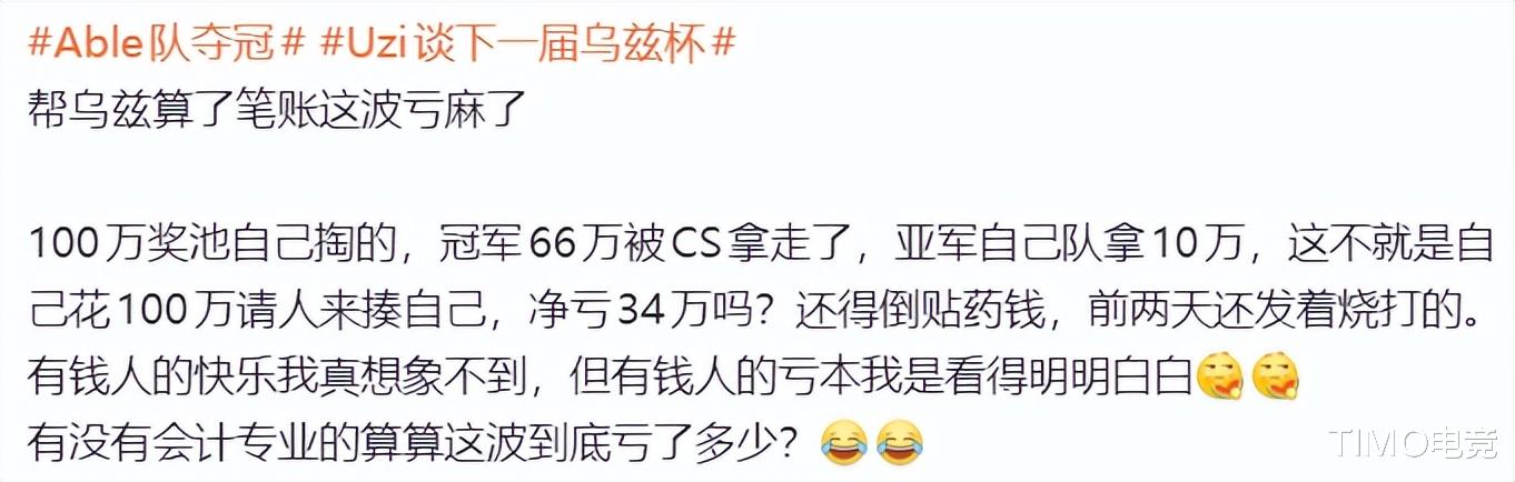 网友们的评论更是炸开了锅,犀利又好笑,两极分化直接拉满!吐槽派火力全开:“JKL 0-22,建议直接去打Uzi杯凑数,别来LPL丢人现眼”“呼吸哥怕不是赢麻了失了智?LPL不如Uzi杯,这话亏他说得出口”“小奶油飘啥啊?自己打得也没多好,还好意思不想和Tian同队,难怪TES菜得离谱”。