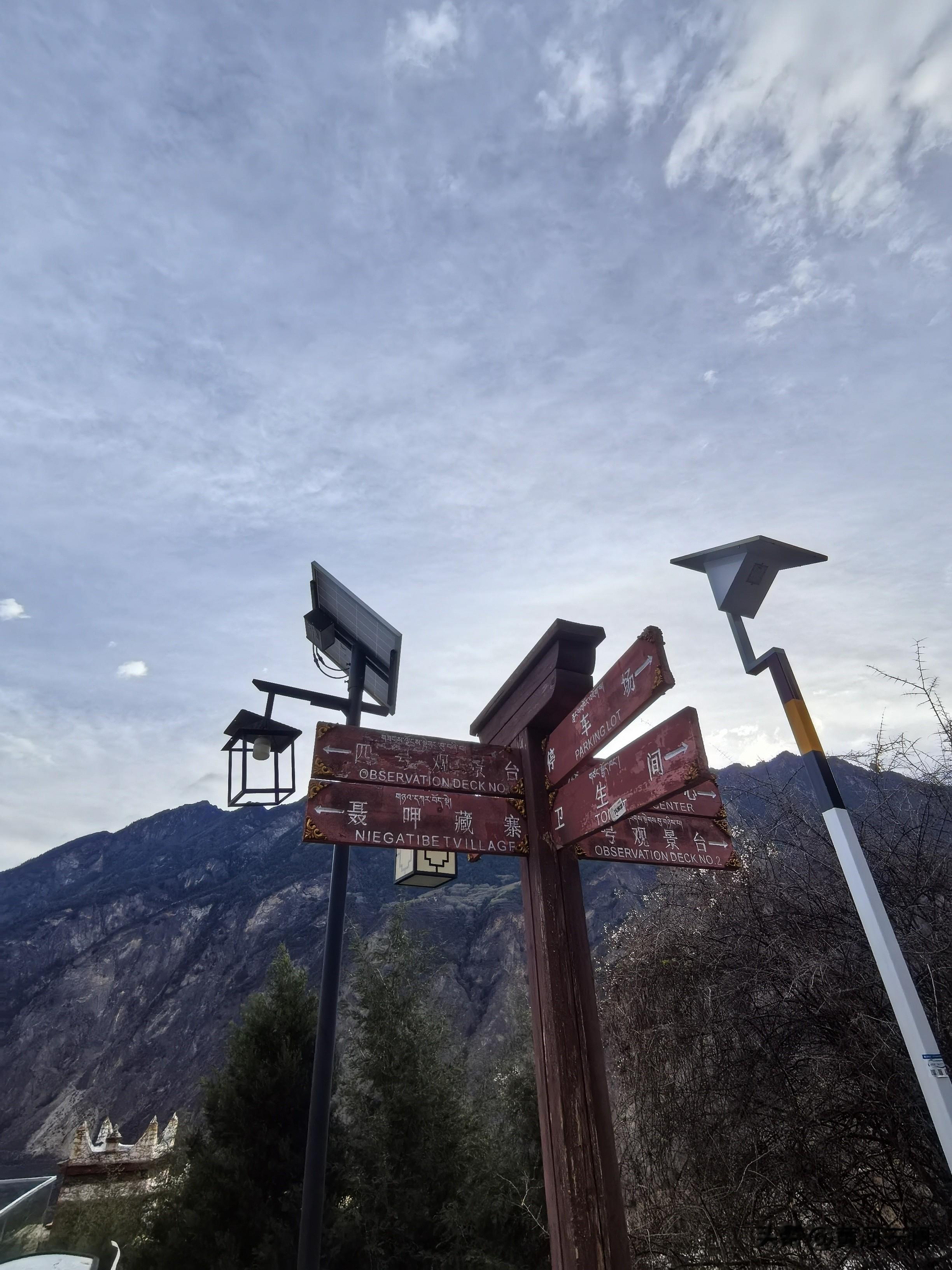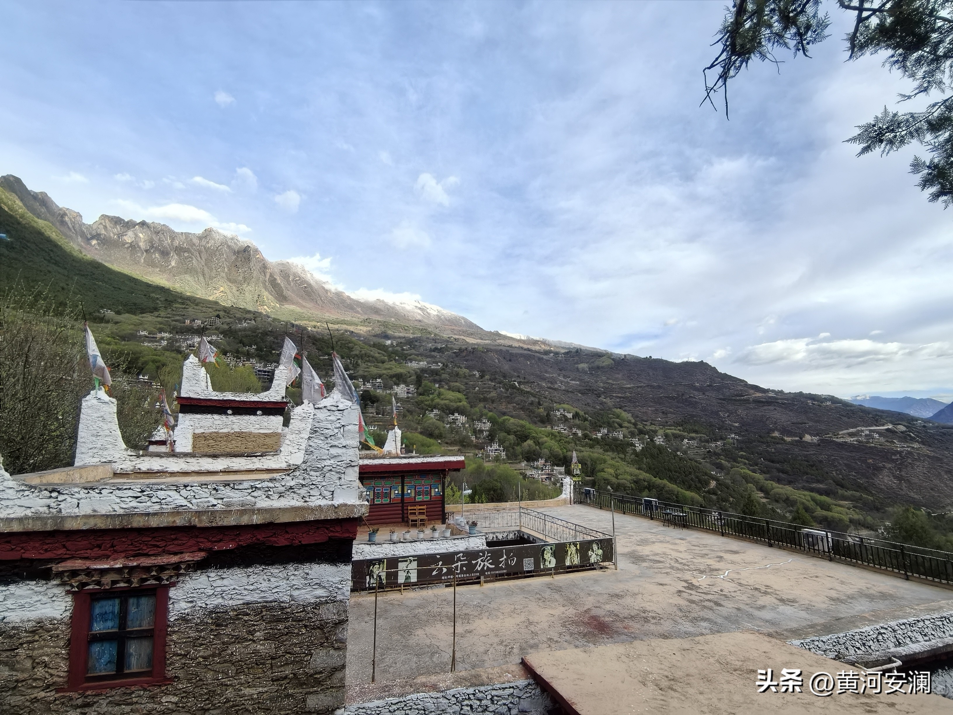 一号观景台,海拔最低,离寨子最近。这里是拍藏楼特写的最佳位置。你能清楚地看到藏楼的建筑细节——那精美的木雕窗户,那用石头垒砌的厚实墙壁,那晾晒在阳台上的辣椒和玉米。这个观景台适合慢慢看,细细品,感受藏式建筑的匠心。