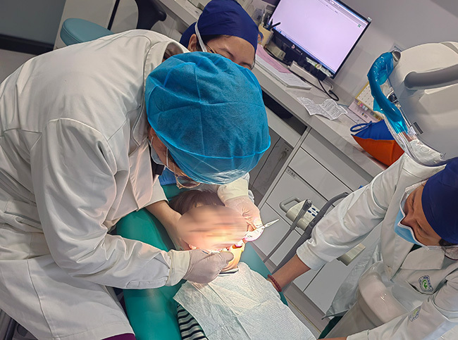 患儿因乳牙根尖炎影响恒牙正常萌出,需及时拔除患牙。但由于年龄小、对牙科治疗极度恐惧,孩子进入诊室后情绪紧张、哭闹抗拒,常规诊疗难以开展。若采取强制约束方式,不仅会增加操作风险,更可能给孩子留下长期心理阴影。