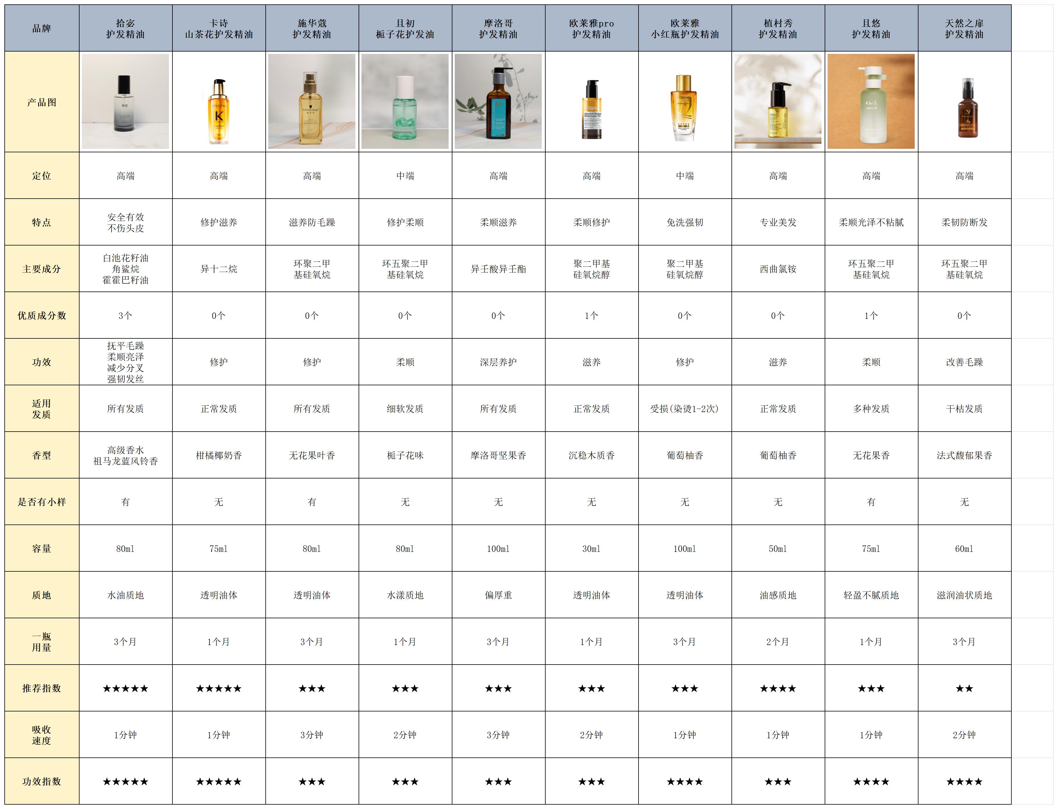 本期护发精油测评大致情况如下: