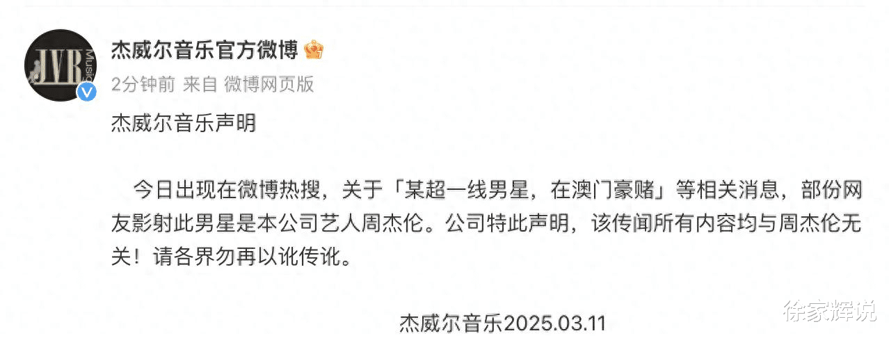 当谣言成为流量密码:透视当代娱乐产业的信任危机从周杰伦声明看谣言传播新形态2025年3月11日,杰威尔音乐官方微博发布的