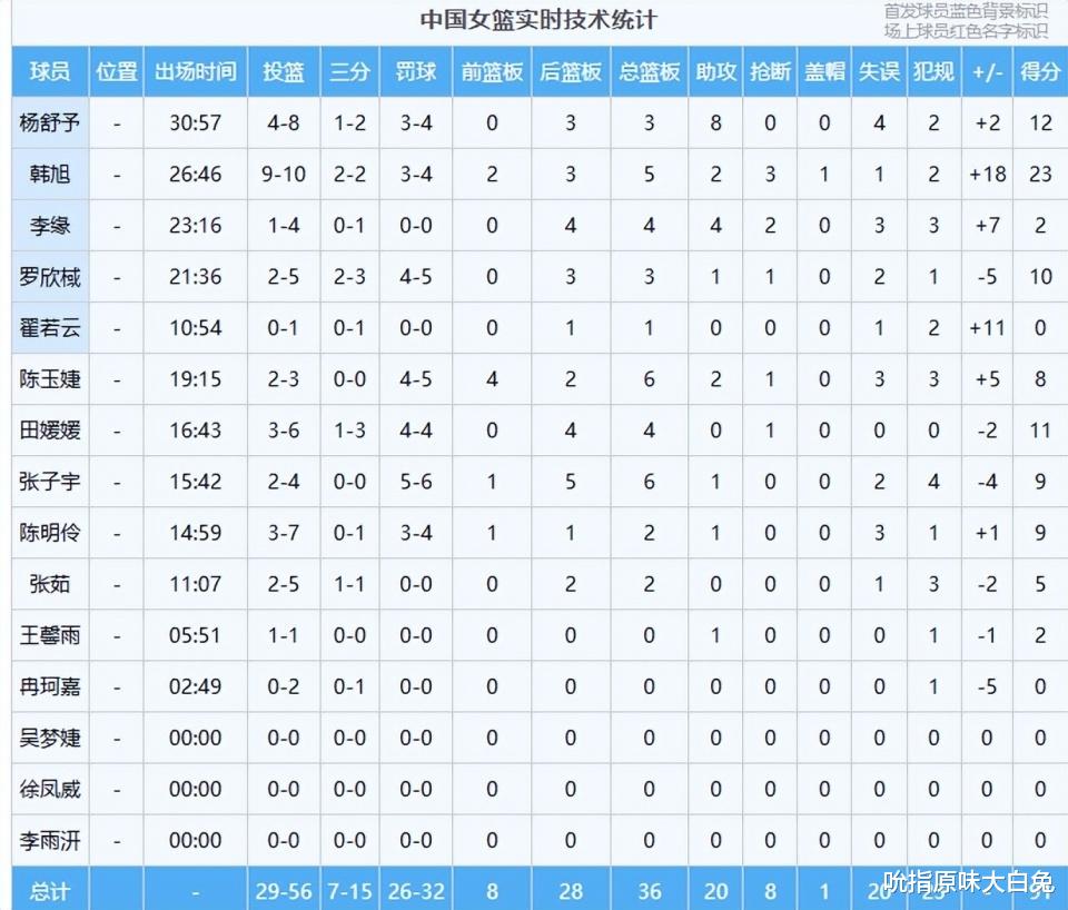 宫鲁鸣用李缘引争议,热身赛第二场上了23分钟,4投1中拿到2分,送出4个助攻。之前的采访中,宫鲁鸣说李缘要扛起中国女篮后卫的大旗,现在来看是否合格?宫鲁鸣强行更新换代,王思雨、杨力维、李梦都不用,按照球员履历来看,参加过奥运会、世界杯、亚洲杯、亚运会的李缘,确实成了后卫线上的核心球员。但是把她拿上首发,她是真没那个能力。经常拿到个位数的分数,还有0分,越打不好,状态也越差。