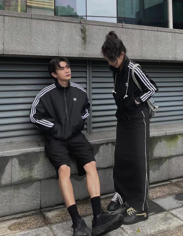 搭配三条杠裤子,一双贝壳头或者samba,是潮人icon的固定搭配公式。但这种搭配看着网上的博主们都很时髦帅气,但是回归现实,真的很少有人能把套装穿出自己的味道,基本都是跟风罢了。