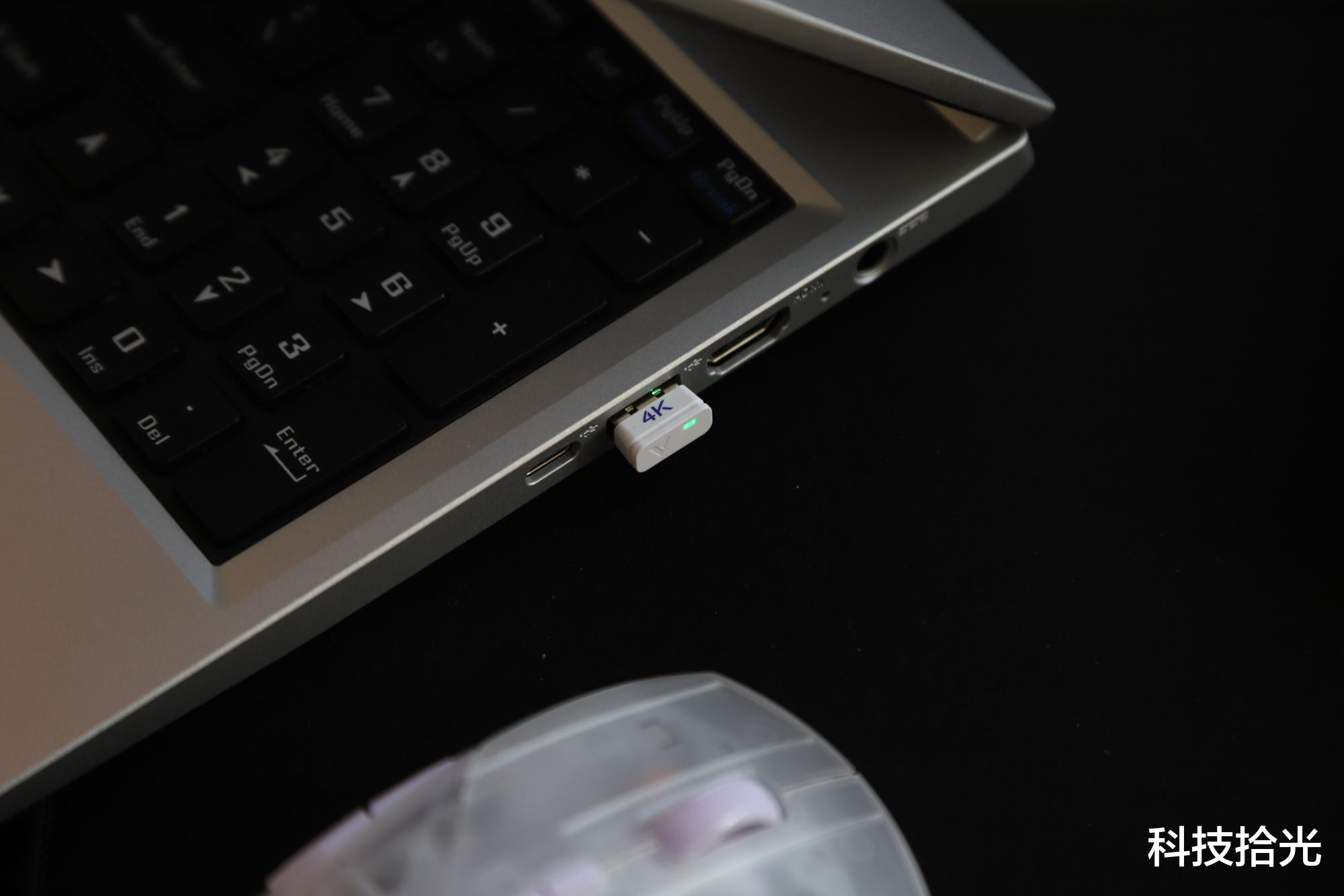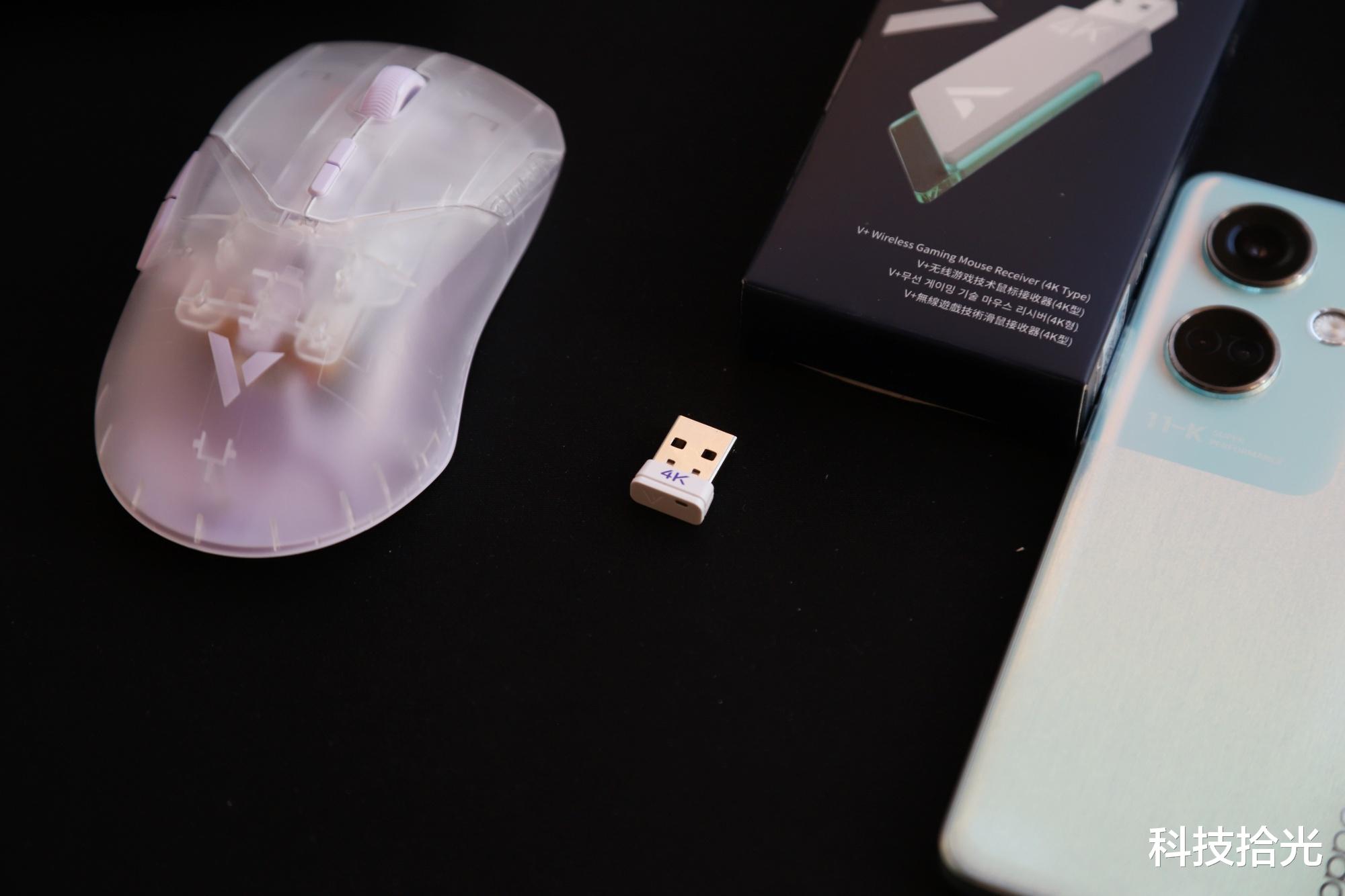 接收器上有4K的标识,并且——还设计有鼠标RGB电量指示灯!也就是说买VT9Air就不用再买雷柏自家的4K接收器了,所以你打算生产的接收器卖给谁,哈哈?(这也太卷了吧)。鼠标原装接收器比自家4K的接收器小多了,支持电量实时监测,对码灯效显示,别看就这么小,功能真的很强大。