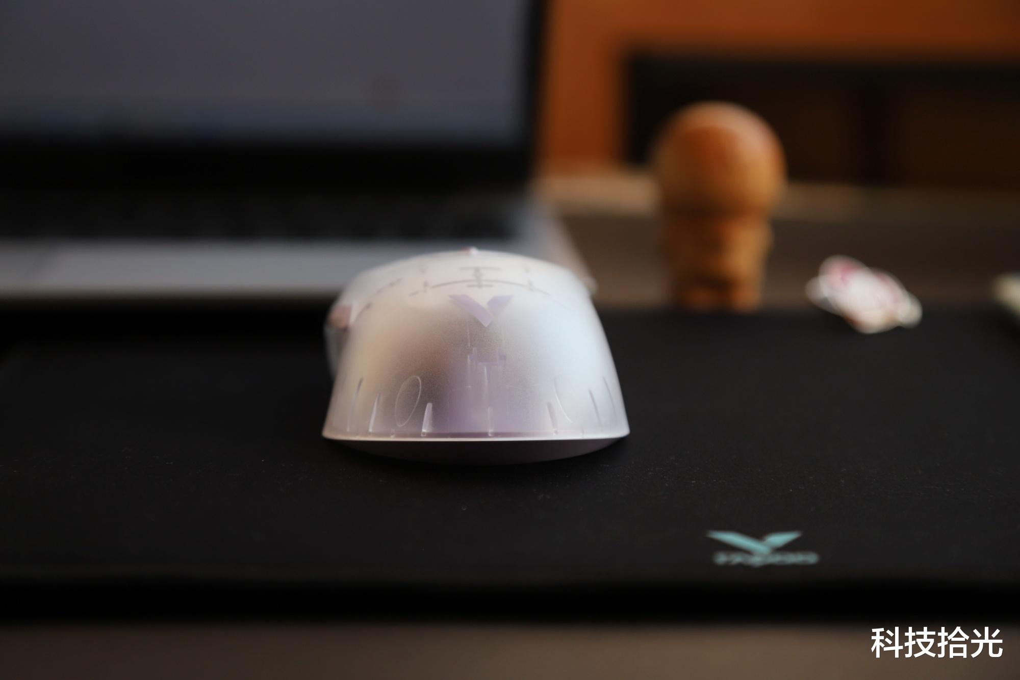鼠标上手的实际手感非常轻盈,你会感觉举起鼠标似乎轻若无物,毕竟鼠标的重量大约也就是一枚鸡蛋的重量,不仅是游戏,其实办公用起来也是非常舒适的,久用不累。而且用了2周,发现鼠标外壳也并没有打油的情况,这个磨砂材质并不容易被弄脏,使用上尽可放心。