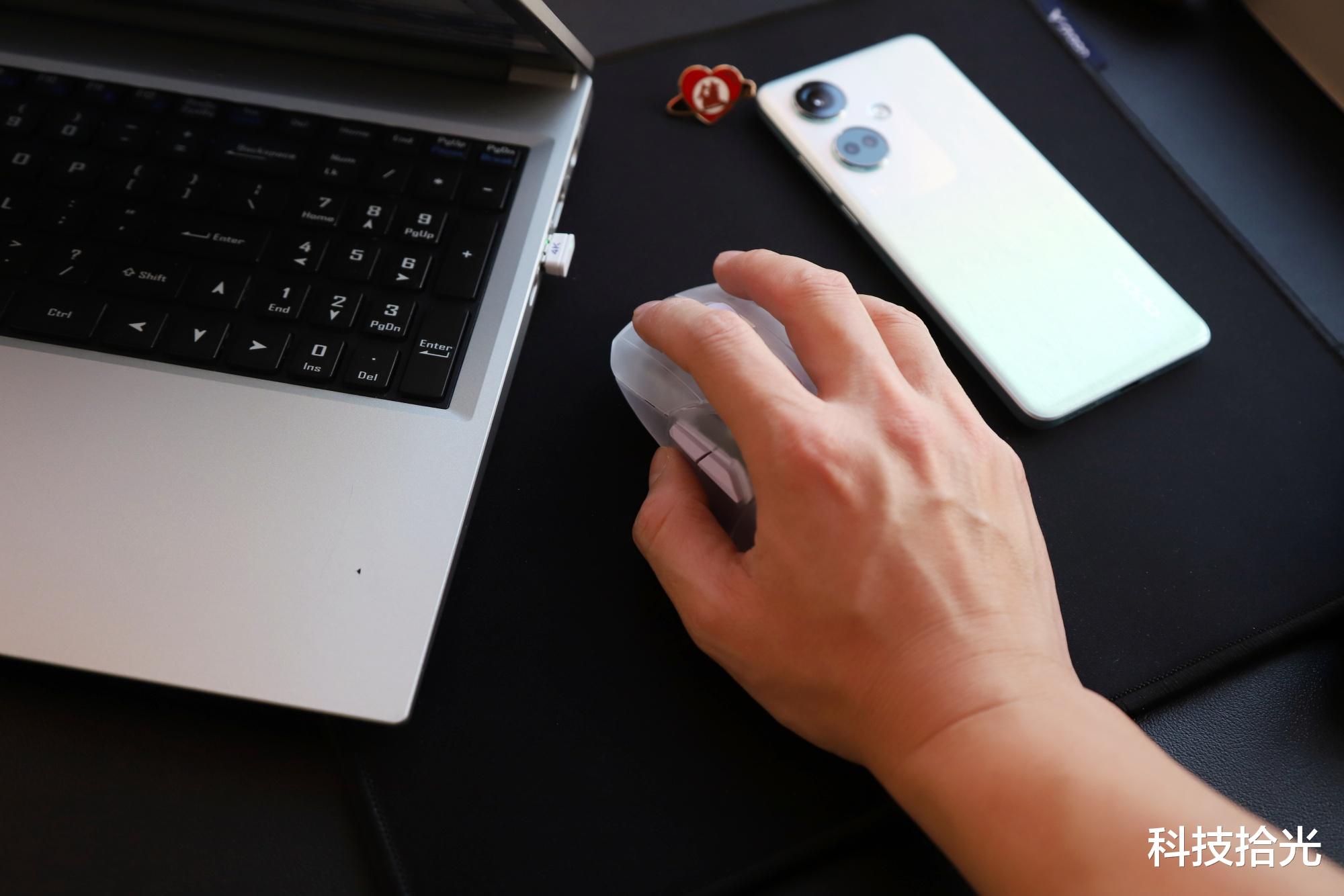 灯效上面,拥有绿、黄、橙、红颜色,当接收器显示红灯闪烁,就意味着电量较低(20%以下),这个时候记得及时给鼠标充电,甚至充电时依旧会有绿色呼吸灯显示,满电时会绿灯长亮,一个小小的接收器卷橙这样,我只能说:简直太酷炫了。