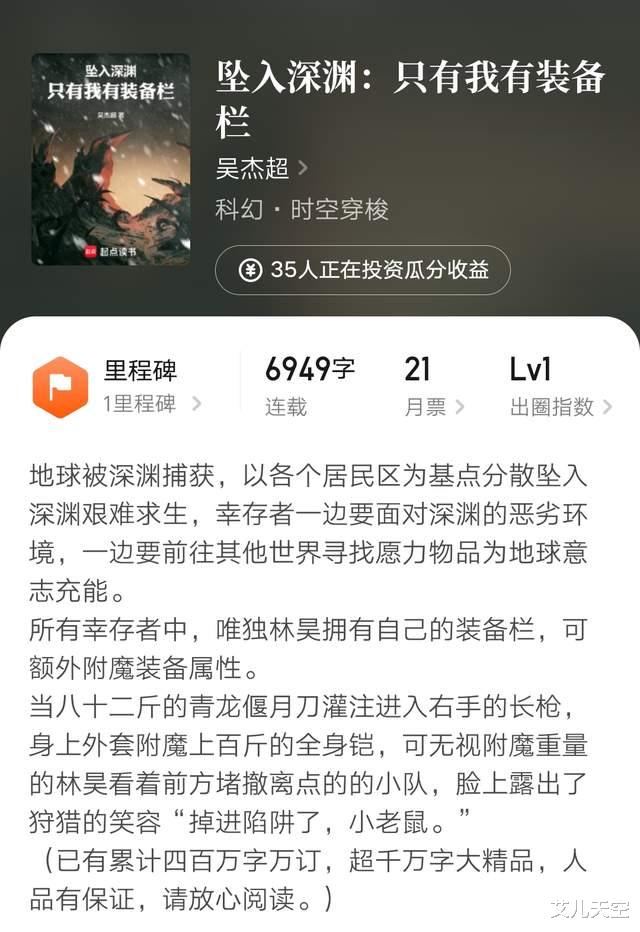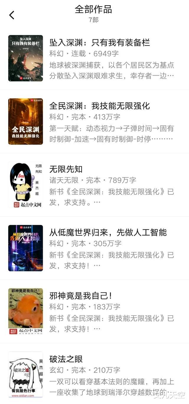 他上本的《全民深渊:我技能无限强化》临近七月底完结的,四百多万字万订成绩,时隔三个月看来也是准备在深渊文上再接再厉了。