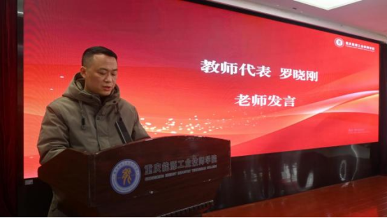 随后,中核五公司技术能手万文礼代表企业发言;来自中核集团五公司、华兴公司2名优秀校友郭健鸿、谯力志通过“云分享”的方式为学弟学妹加油鼓劲;学校技能大师罗晓刚以教师代表身份,以“匠心、绝技、敬畏”三个主题词为学员授业勉行,订单班学生代表杜文靖上台作出郑重承诺。仪式现场还设置了温馨的赠礼环节,校企双方共同为学员送上入学礼包,寓意着携手共育、匠心启航。