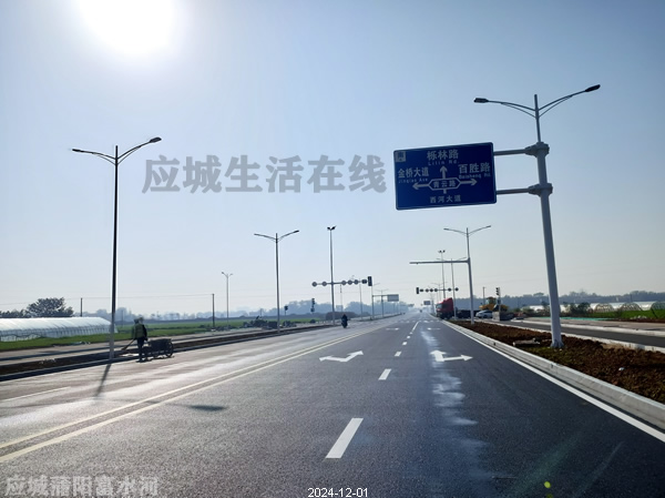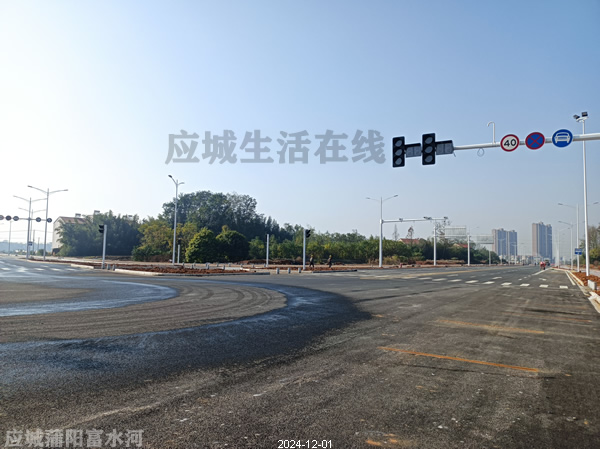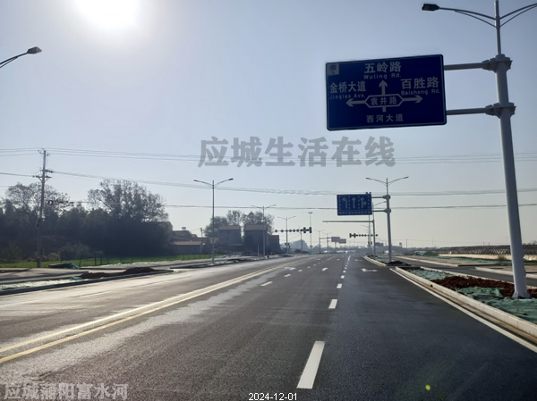 应城沿河大道(横二路-横五路)项目2024年12月份进展,基本完工,这个路现在叫西河大道,是两河新区的又一条纵向道路,北起点为横二路,向南到横五路,全长约1.38公里,宽40米。建设内容包括:机动车道、非机动车道、人行道、供水、雨污排水管网、强、弱电管线、绿化、照明、交通设施等配套设施建设。