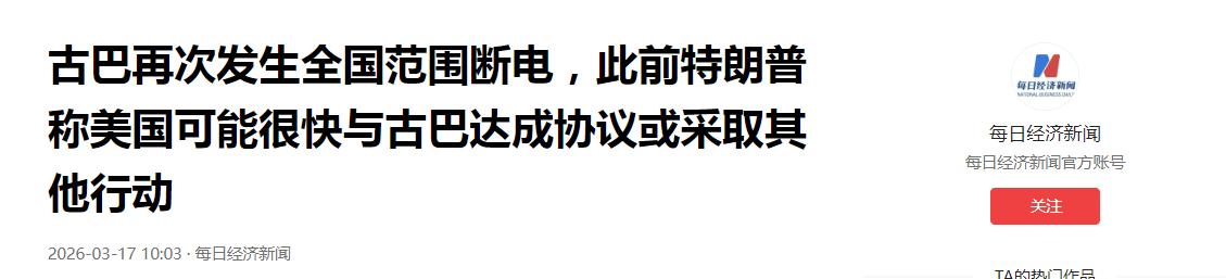 3月16日,特朗普在空军一号放话“游戏即将结束”,将矛头对准古巴,随之而来的是石油禁运与经济封锁,哈瓦那陷入每天停电16小时的至暗时刻。