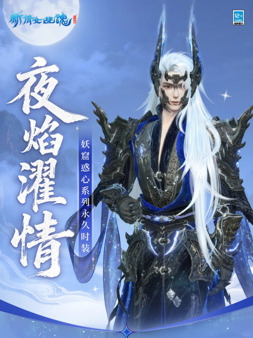 而以灵气之山孕育的蝎子精也有了更威严霸气的一幕!男款时装身上的深色盔甲,无论是肩部、胸甲还是腰部的设计,都呈现出一种坚硬、分明的层次感,如同蝎子坚固的甲壳。流动的银白发丝和飘逸的蓝色绸带也为时装更添一分“仙气”,满满的东方古典美学让蝎子精也新生了~相信大家在感受到其强大气场的同时,也被其深邃的魅力所吸引!