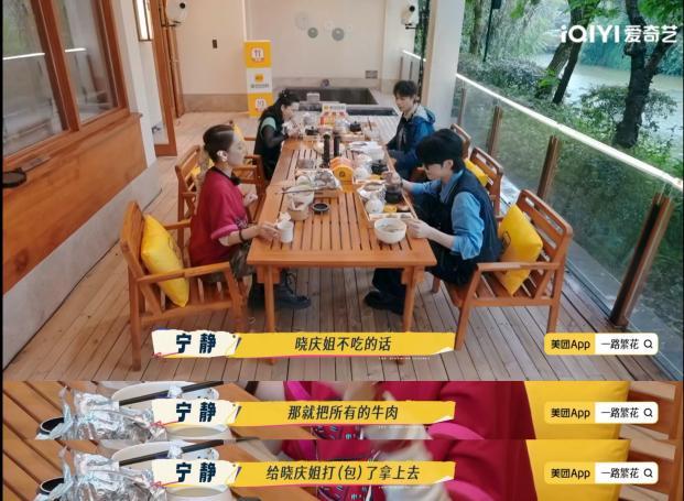 繁花团聊天处处出爆梗让人胆战心惊,对比之下,他们的旅行日常则显得温馨许多。这一季的刘晓庆被宠成“团宠小公主”,哪怕经费紧张,刘嘉玲也主动提议:“把伙食费省出来,给晓庆吃肉”;早餐时大家默契为她留好专属肉菜,看着晓庆姐大快朵颐的模样,不禁想到网友们宠溺的调侃:70几岁正是长身体的年纪啊!而被观众点评“从魔丸变灵珠”的宁静也在旅程中逐渐袒露内心,她坦言:“和以前参加的旅行真人秀,心情是不一样的。你碰到的人是什么样的,你就会有什么样的反应。”从在别的旅行综艺中“装合群”,到如今主动照顾姐姐、调节气氛,她坦诚表达:“在这群姐姐身上,我学到了很多说不清道不明的东西。”