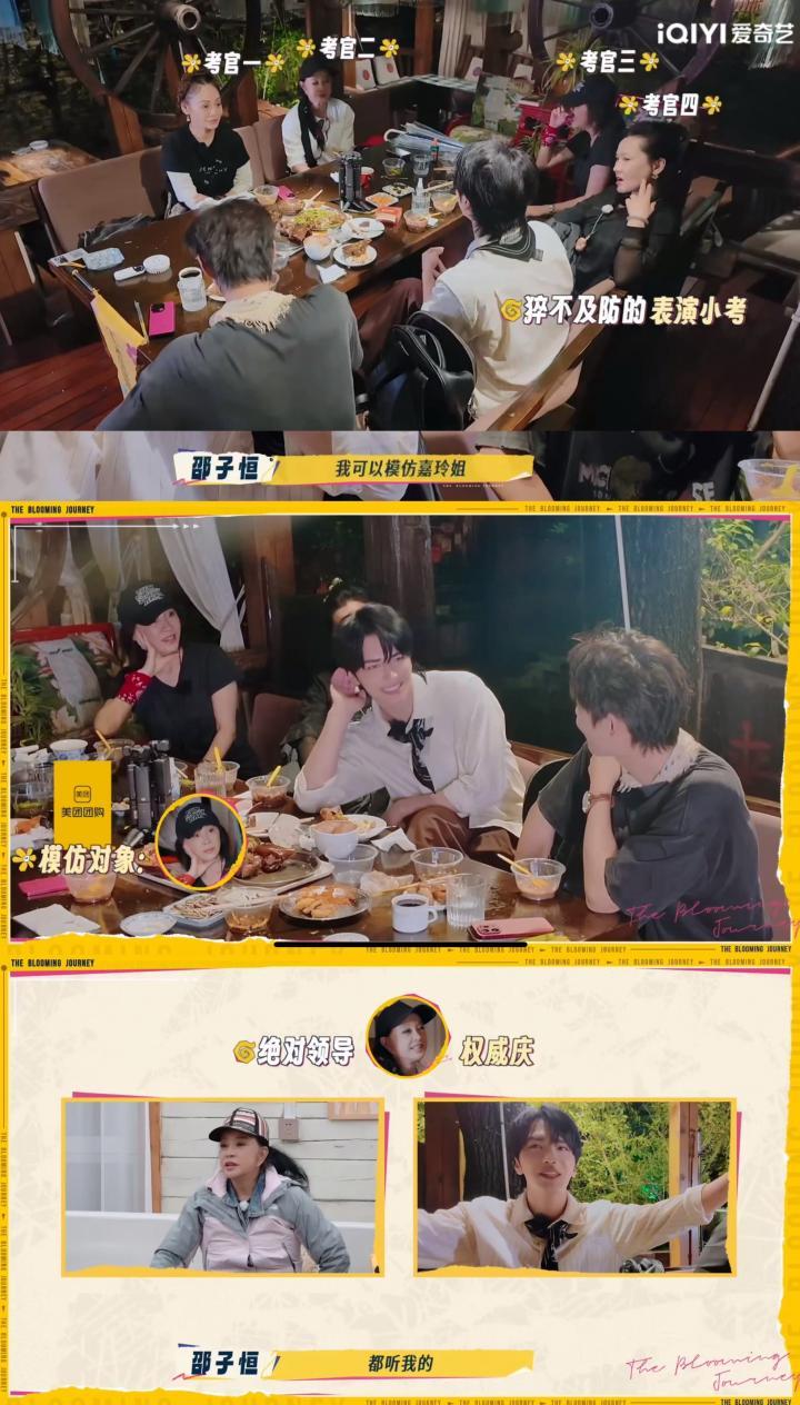 年轻的弟弟们在旅途中也是氛围担当。游戏中邵子恒模仿各位姐姐的经典神态拿捏得丝丝入扣,敏锐的观察力让影后们纷纷竖起大拇指。柯淳则是行走的暖宝宝,旅途全程贴心照料,主动帮姐姐们点菜买零食,何赛飞墨镜丢了立马送上自己的;每当影后们聊起表演,他眼睛亮晶晶认真听讲的样子,简直就是迷弟本弟!