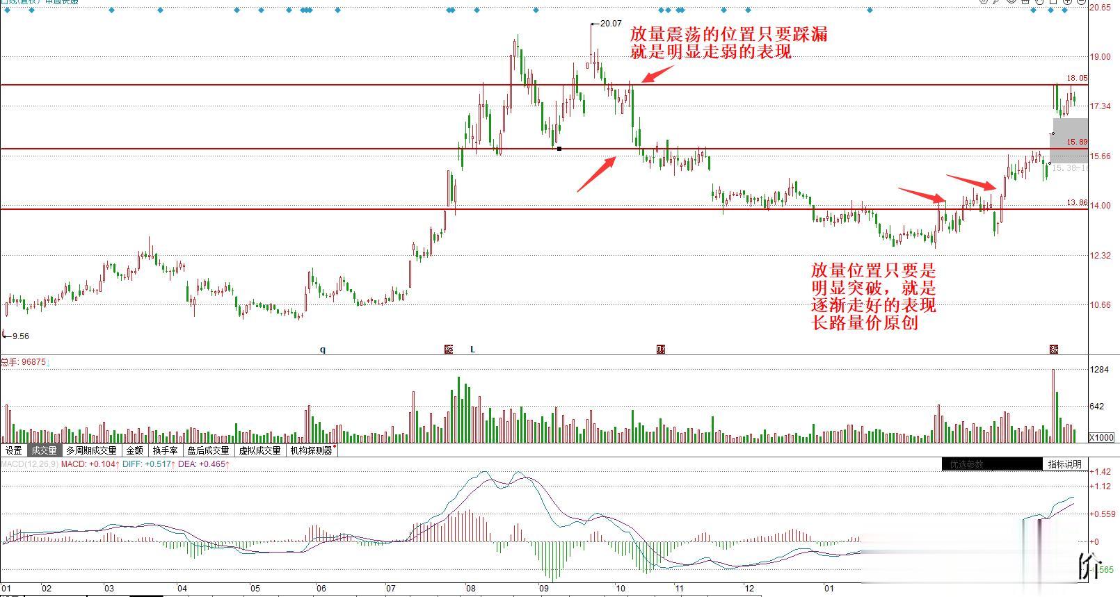 那么上涨也是一样的道理,不管前面的走势跌了多深,只要是把横盘震荡或者放量震荡的位置吃过去,就是逐渐走强的表现,而后面涨多高就需要看具体走势了,而不是只要突破就知道后面会涨多高,以上都是本人的浅薄的看法,仅供参考。