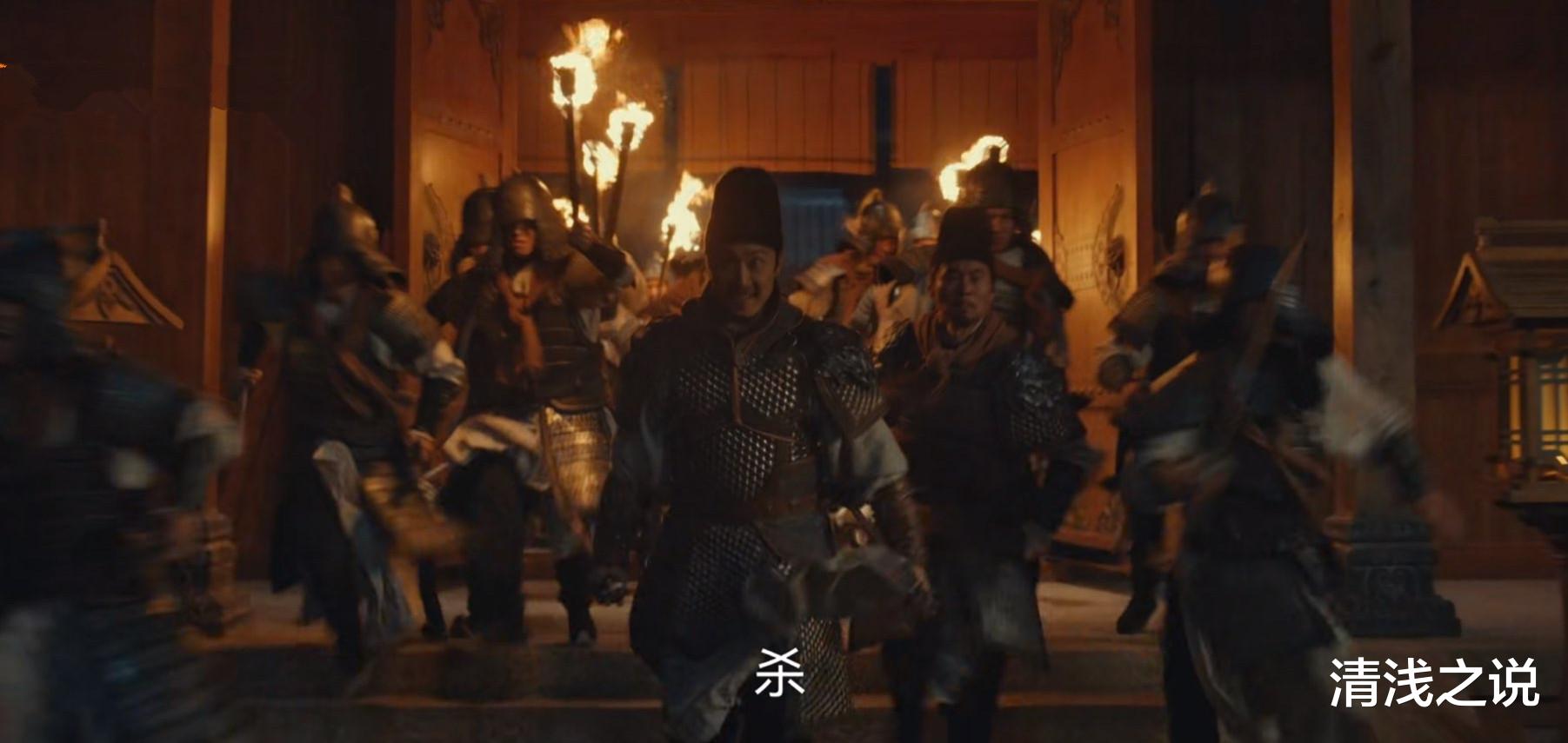在何承训到来前几分钟,忠顺都虞候蒋多逊说自己奉钱俶之命前来禀报军情,说胡进思进了宫,还带着兵,欲行非礼之事。水丘昭券知道蒋多逊是口误,应该是欲行废立之事。毕竟之前钱弘倧打算在宫宴上侧殿伏杀胡进思,胡进思常以开国功臣自居,根本不把钱弘倧当回事,如今对方要杀自己,必然会反击。