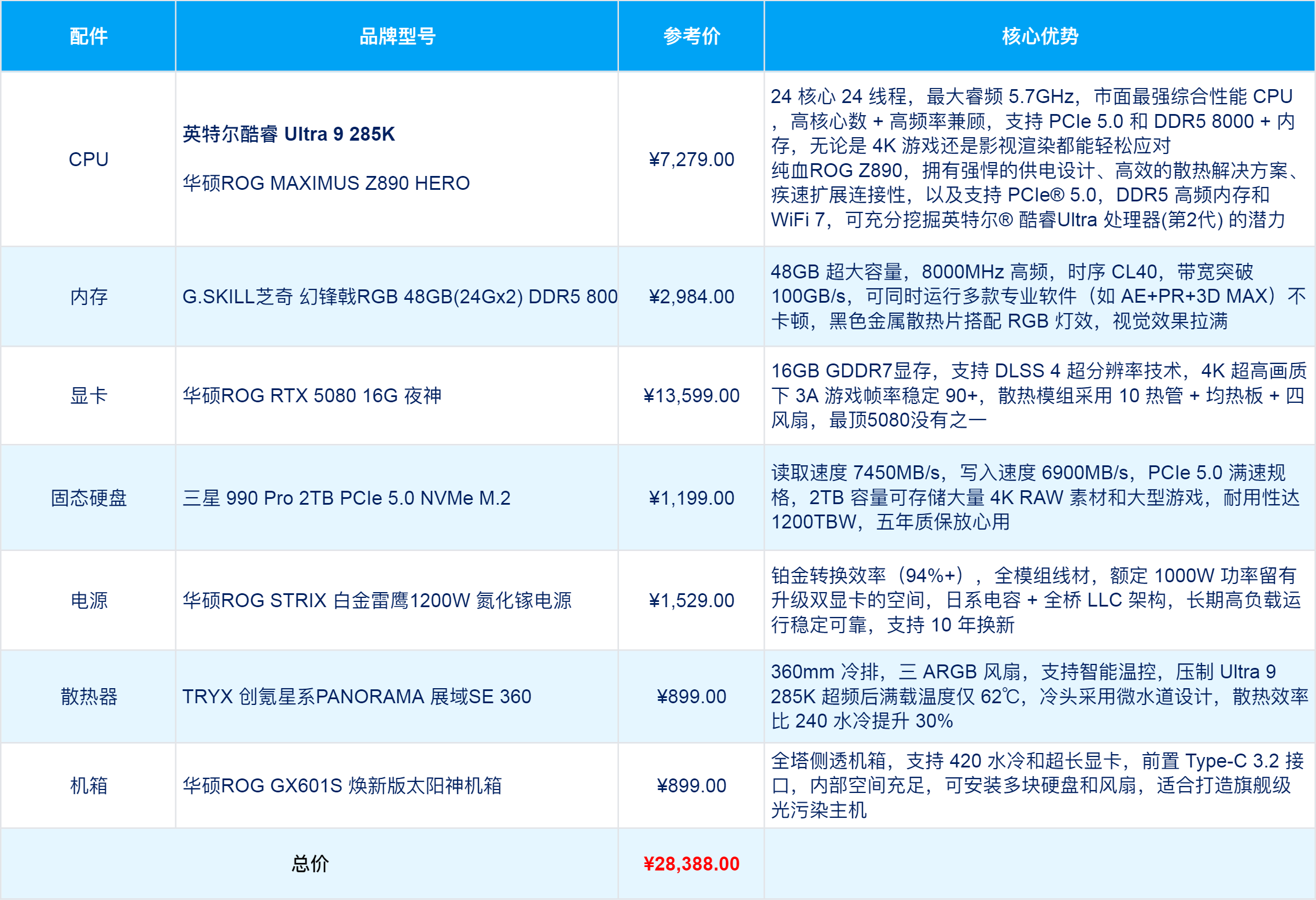双 11 期间京东自营旗舰店提供主板套装 叠加晒单送E卡,实际到手价可控制在 30000 元以内,是专业用户和硬核玩家的终极装机选择。